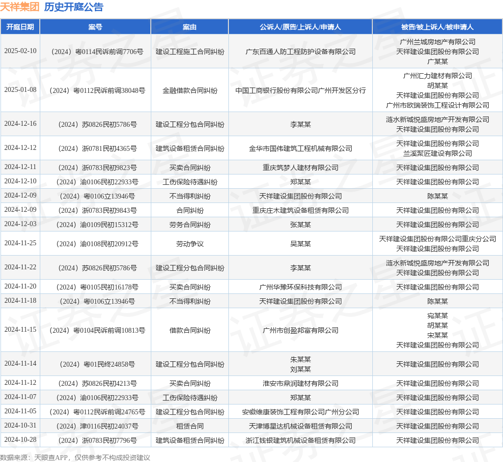 本站消息,根据天眼查APP显示,近日公布了一则天祥建设集团股份有限公司作为被告/被上诉人的开庭公告,详细内容如下: